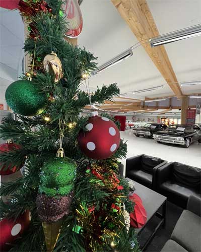 Avnjut först glöggmingel bland de glänsande klassiska bilarna i den unika miljön. Därefter väntar en uppdukad buffé av läckerheter med kall och varm mat. Som avrundning har du ett dessertbord med ostar och andra godsaker.
